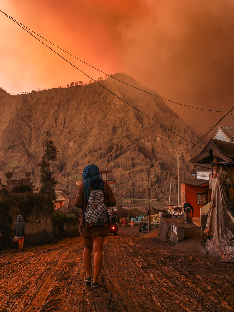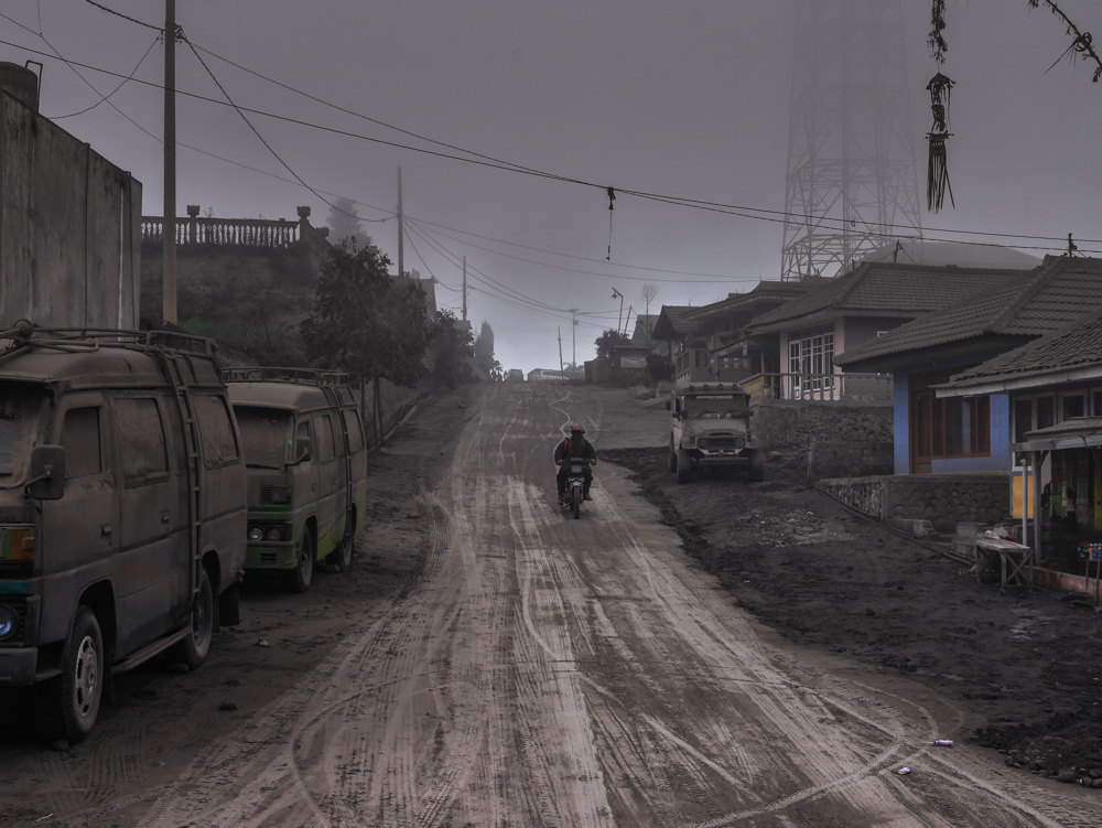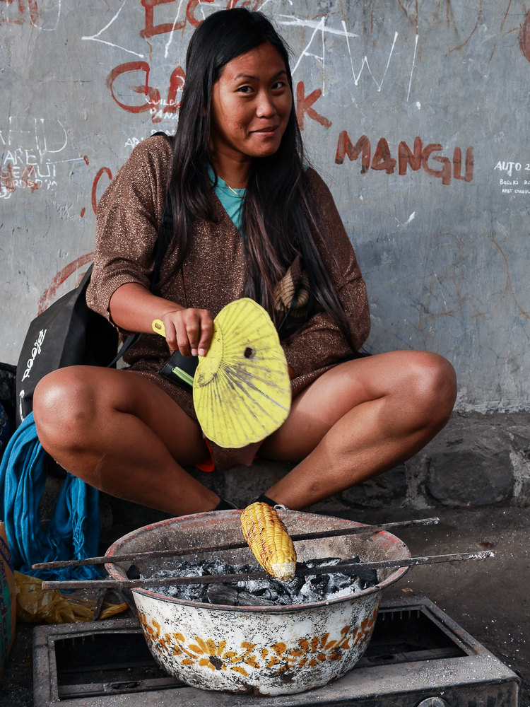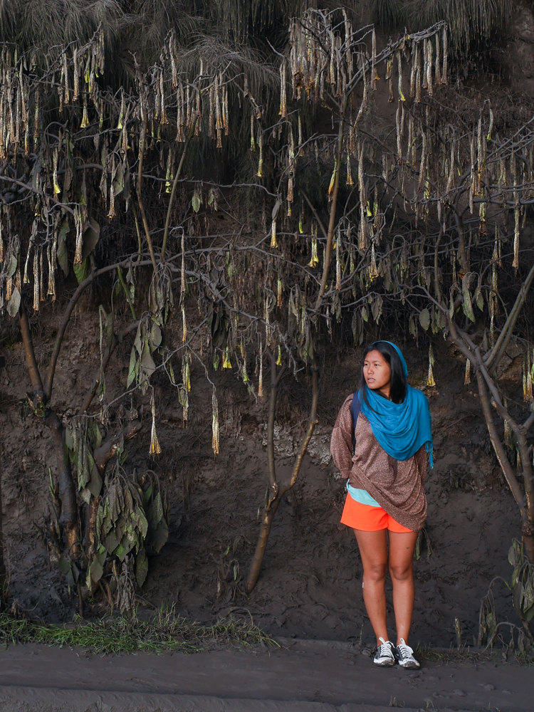 A dog played with a dead pigeon on an ashen field of leeks. It rained ashes once again. The nase goreng by Mt. Bromo’s viewing deck tasted good. We brought our own thermos and instant black coffee. We bought boiled water from a coffee vendor.