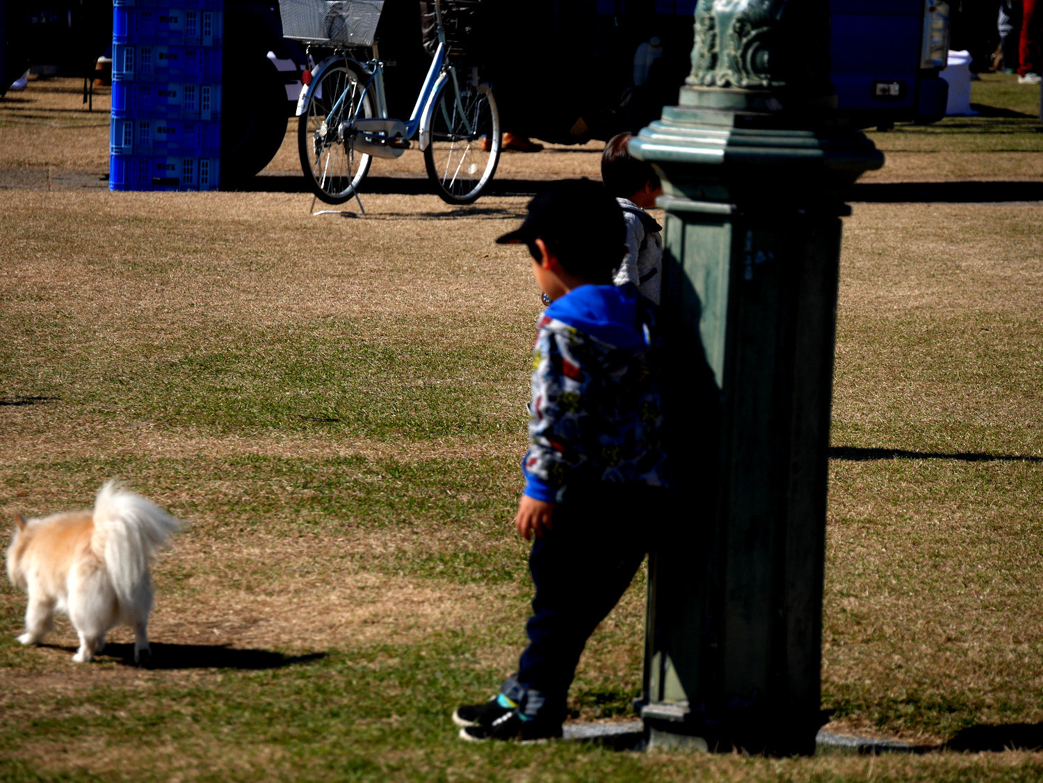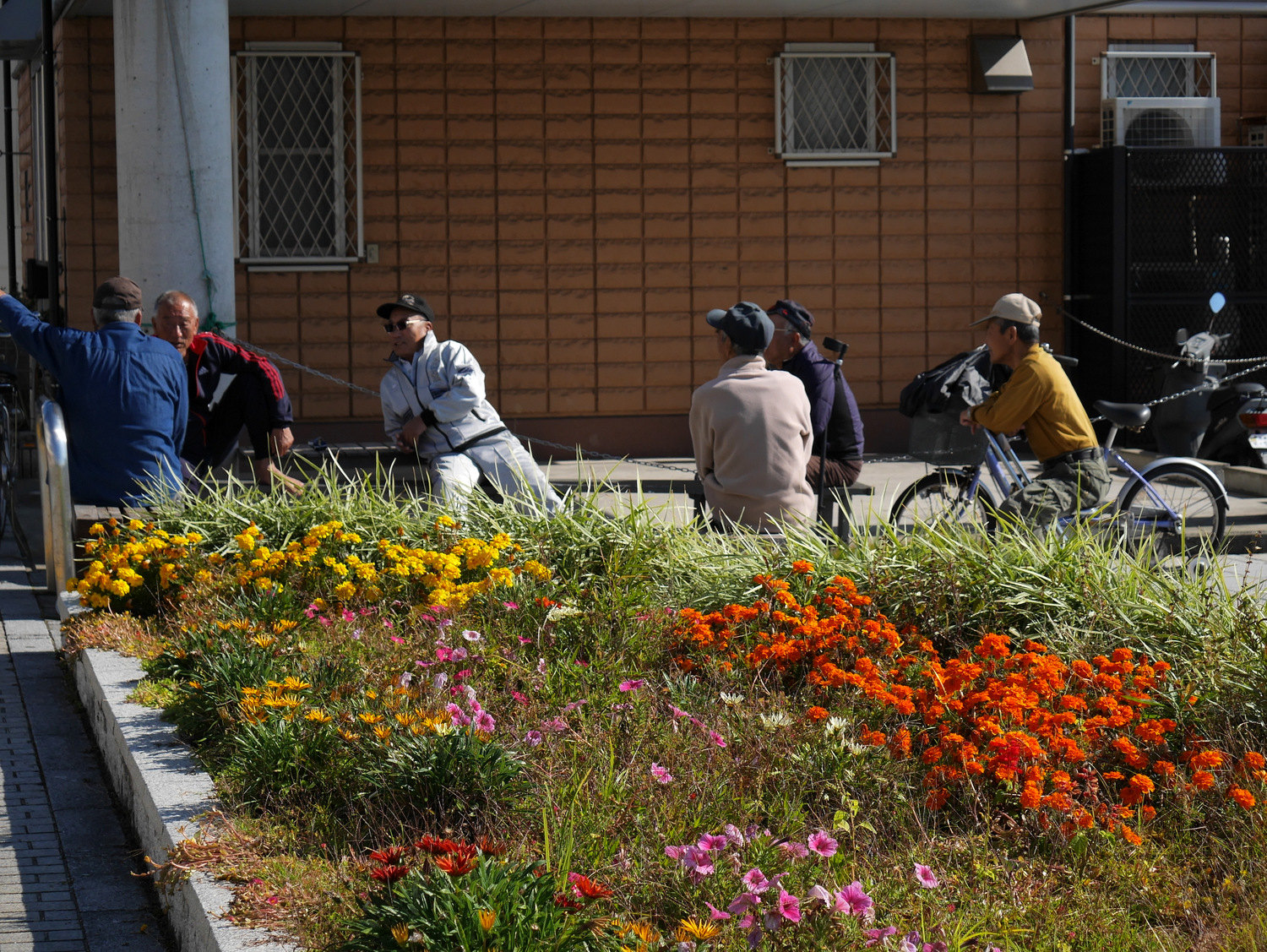 In front of Ministry of Commerce and Industry, old locals ran a bazaar of used clothes and local finger food. By Toshio Yodoi’s Beach sculpture, five grandpas looked after a three-year-old boy who pointed at the marigolds, yellow and orange, young and blooming.